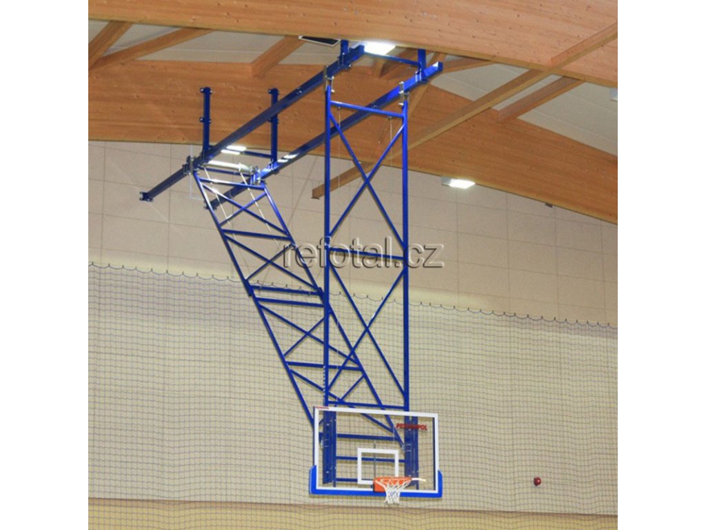 Profesionální sklopná basketbalová obruč Pressmatic. Uzavřený sklápěcí systém zvyšuje bezpečnost. Sklápění pomocí plynových pístů. Okamžité navrácení koše do původní polohy bez vibrací. Uchycení sítě pomocí bezpečných háčků.